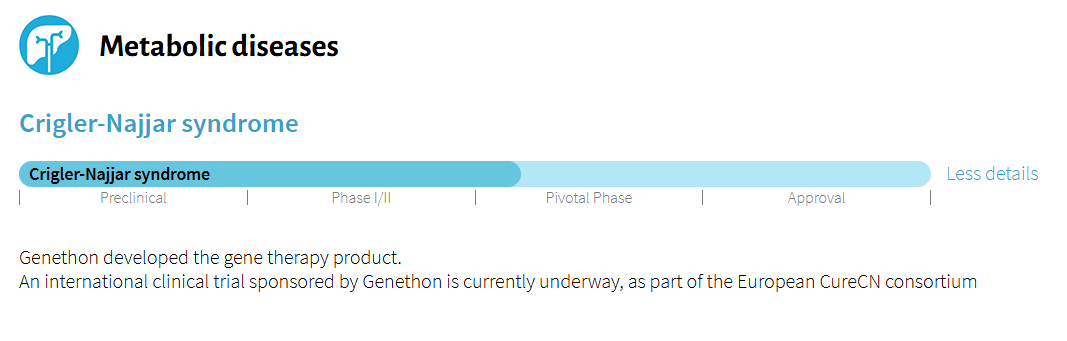 Genethon针对克里格勒-纳贾尔综合征的研发管线